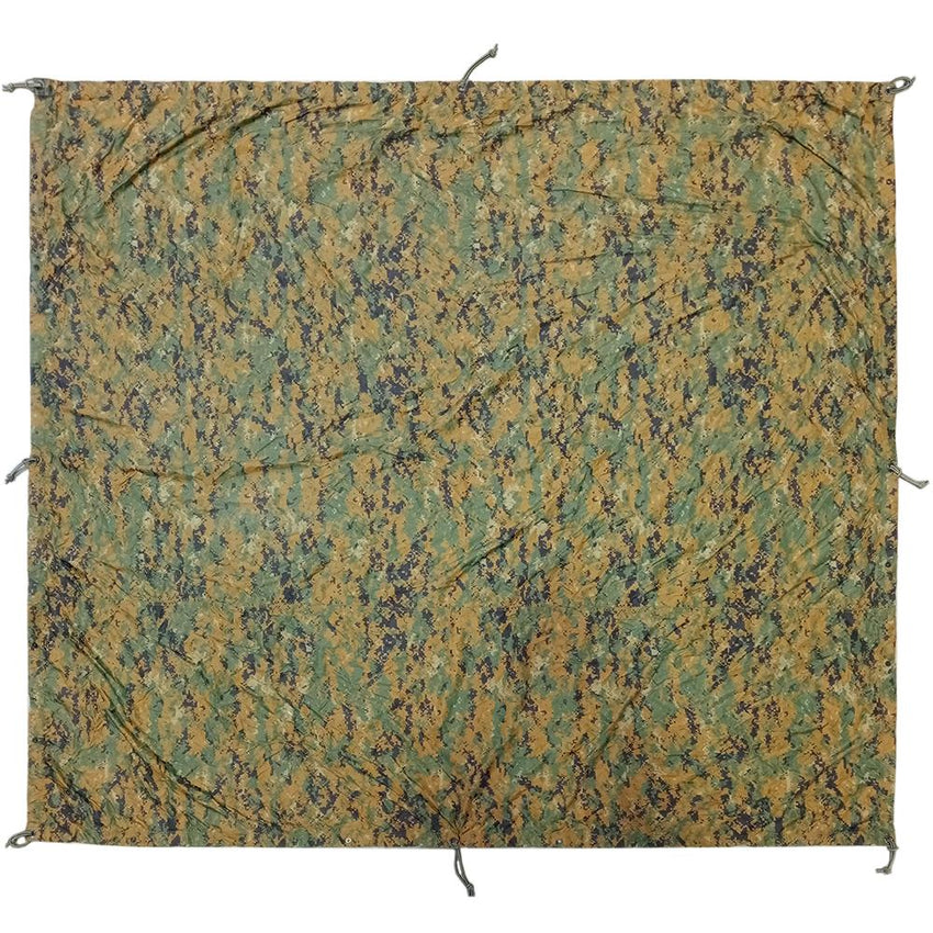 This is a genuine issue USMC Reversible Woodland MARPAT/Coyote Field Tarp. If we didn't know any better, the Marine Corps may have deliberately cut holes in these to write them off for replacements. Most of these have a 'interesting' smell - this is the urethane coated nylon deteriorating so don't rely on these to fully repel water!