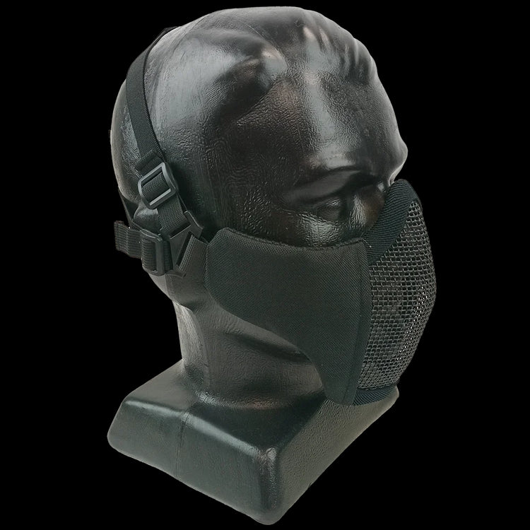 Half-face mesh masks for airsoft are a preferred choice over solid masks for some players, especially those who fog up but like their teeth. The Viper Gen 2 features lightly padded, fabric sides, which conform to the face easier than mesh + provide more side protection.