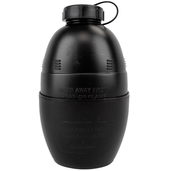The Osprey style of water bottle is a classic among military canteens. This has been standard issue for the British Army for many years. It has a 1litre capacity and is made from strong, durable plastic. The lid is permanently attached and is fitted with a rubber seal. Fitting perfectly on the bottle is a cup with fold-out metal handles. The cup holds approximately 500ml.