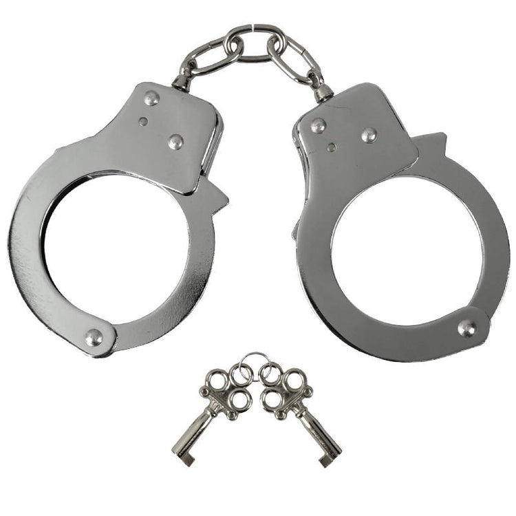 Have you always dreamed of being the hero and taking down the bad guy? Unfortunately, going around performing citizen's arrest may not be the best idea. But a pair of these cuffs are great for use as a prop, part of a costume or reenactments. These are constructed from a zinc alloy with a chrome finish. Each pair comes with two keys in case you misplace one during your adventures.