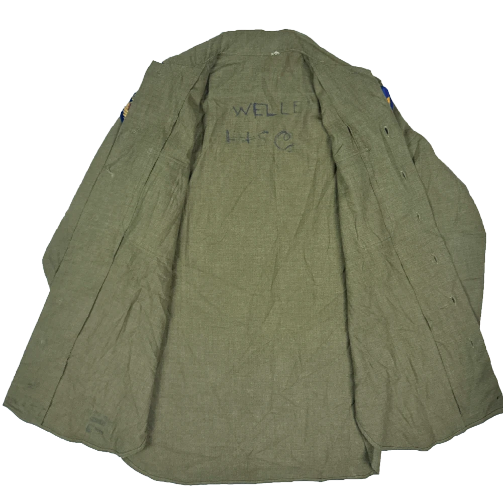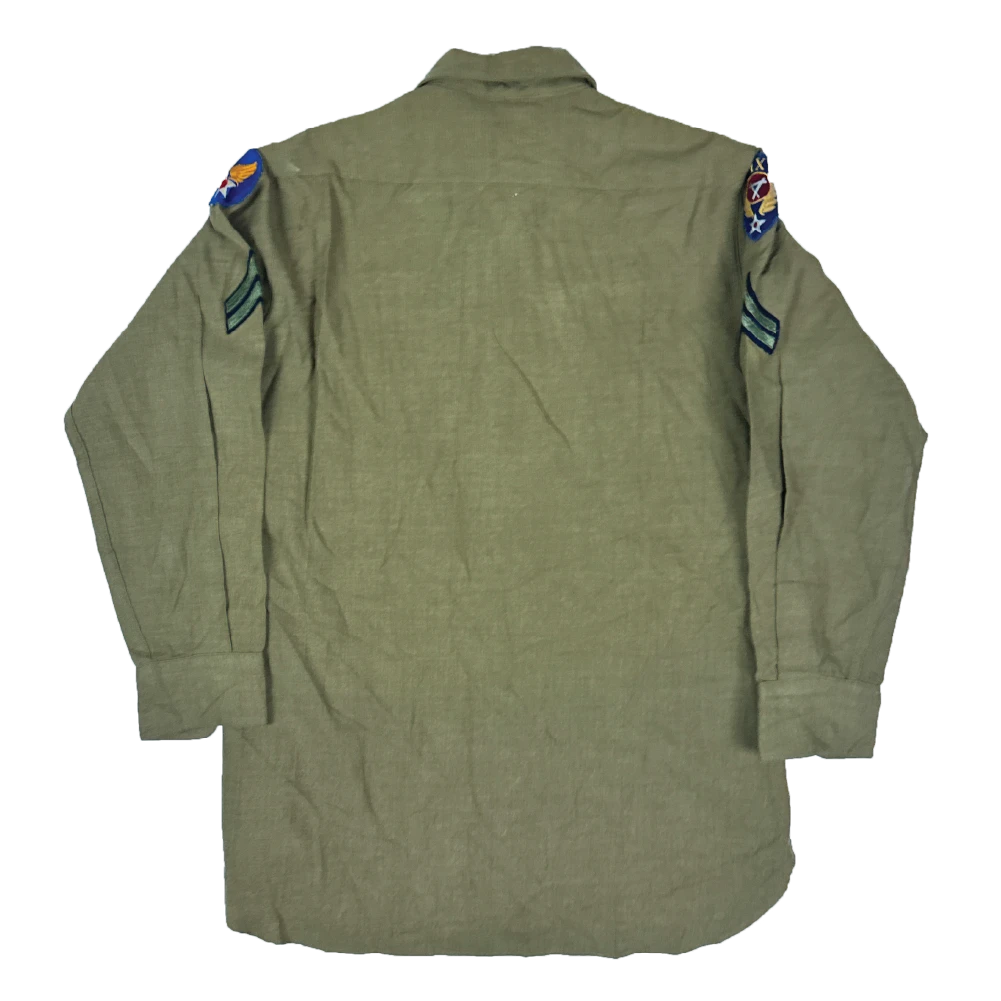 Part of the US standard field uniform at the break of World War 2, these continued to see service throughout the conflict. Features US Army Air Force, 9th Engineers Tactical Command and corporal rank insignia.