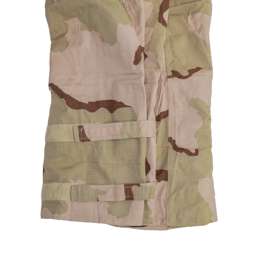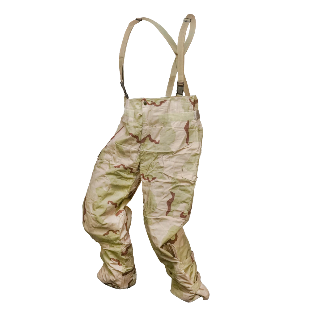 USGI 3 Colour Desert NBC Trousers in 3 Colour Desert camouflage. Constructed from a 50% nylon / 50% cotton outer shell with a protective liner. Designed as an overgarment with integrated adjustable suspenders, waist adjustment tabs, cargo pockets, and adjustable ankle closures.