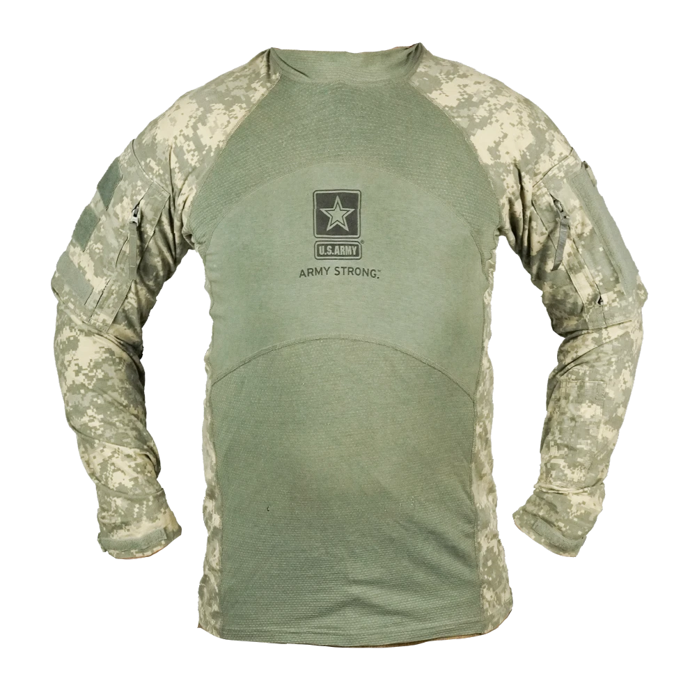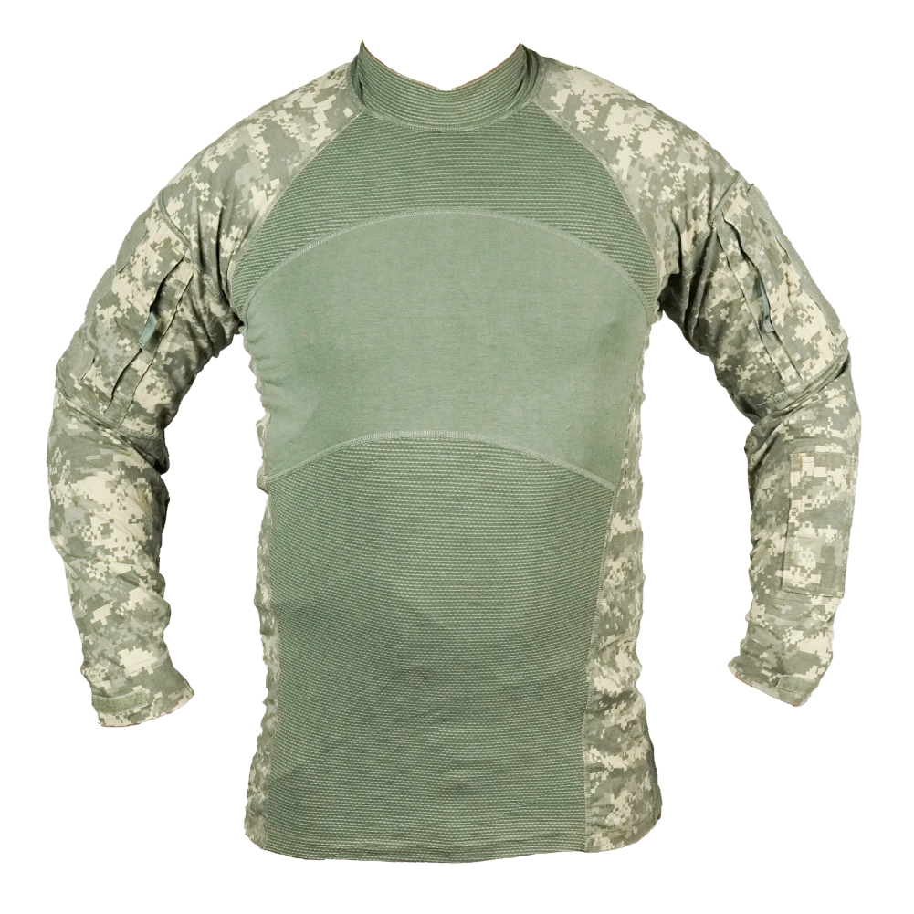 This is a USGI ACU UBAC shirt in UCP camouflage. It is a combat undershirt style garment designed to be worn under body armour, combining a torso section with reinforced sleeves.