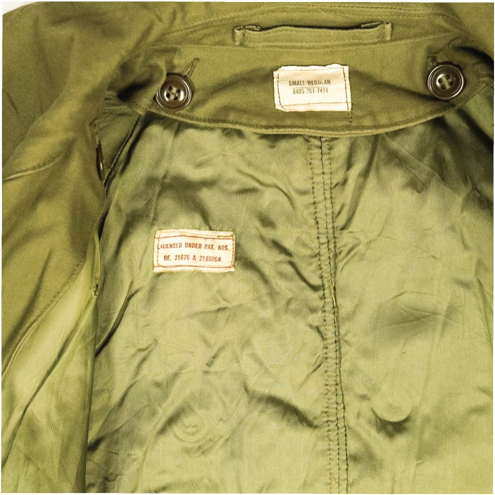 There is a red stain at the bottom, a small hole in the lining, and a hole at the back. Introduced during the Korean War due to shortages of adequate cold weather clothing. These saw use across multiple U.S. service branches and feature US Army 11th Airborne and Specialist rank insignia.