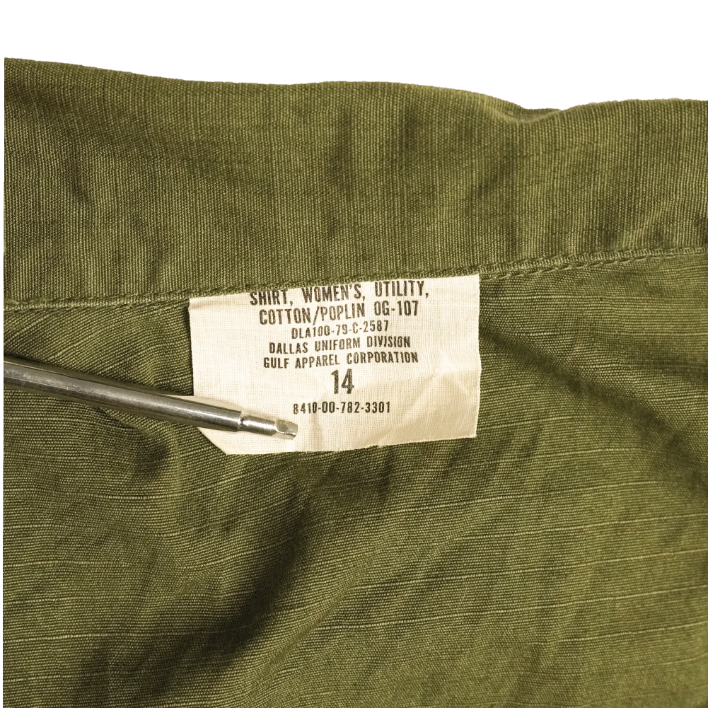 USGI OG-107 women’s utility short manufactured in 1979. This is a military surplus garment with a simple utility cut consistent with the OG-107 pattern.