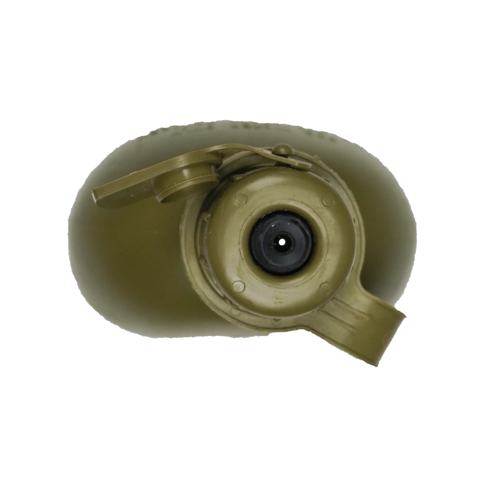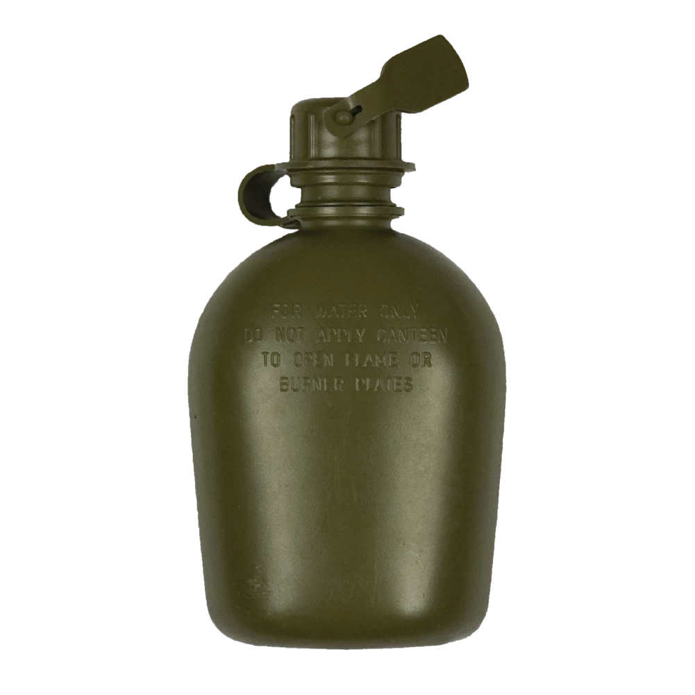 Not only is this sturdy one quart (~0.946 L) US olive canteen handy for transporting water, the top to these is a M1 Nuclear, Biological, Chemical (NBC) cap! These caps are sealed, valved and couple with a drinking hose attachment on NATO standard military gas masks. So there was no need to decontaminate for a sip, simply flip open the valve covering and slot on in to your handy canteen. The whole cap also fits on other NATO standard 28mm military canteens - if you happen to be extra thirsty it's possible to transfer the cap to the two quart. Maybe you don't need to wear your gas mask and have no need for the adaptor? No problem! The valve cap ensemble unscrews as a lid and voila, canteen contents access.