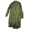 USGI rubber coated raincoat from the Vietnam era. Long cut coat with a button front closure.