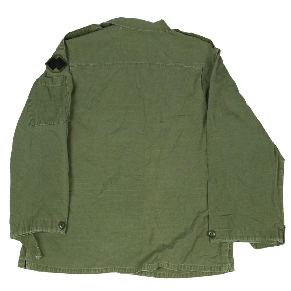 USGI women’s OG-107 ripstop field shirt. Features button-closure hip pockets, a left sleeve pen pocket, and adjustable button cuffs.