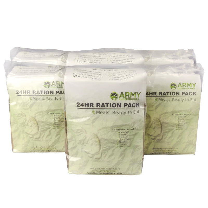 A hearty box of six, 24 hour MREs. Fuel yourself for up to 24 hours with one of these Hunger Buster ration packs. Any of the main dishes can be boiled in water, inside the pouch for 6 minutes or eaten cold. Each pack contains a range of snacks and drinks to keep you fueled. Throw one in your survival kit or try them out while hiking, camping or hunting.