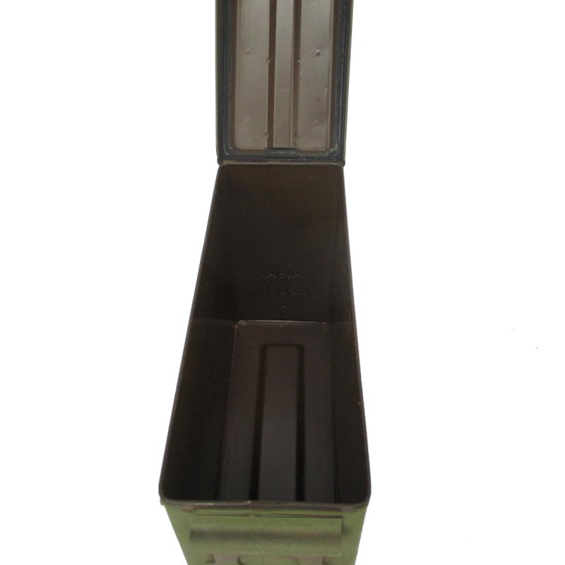 The Australian and New Zealand armies previously used these ammunition boxes to store 30 calibre rounds for machine guns. Constructed from steel with a waterproof, airtight rubber seal for keeping the contents dry. A collapsible handle makes it easy to carry and stack more ammunition boxes on top. Ideal for storing tools, small components and spare parts.
