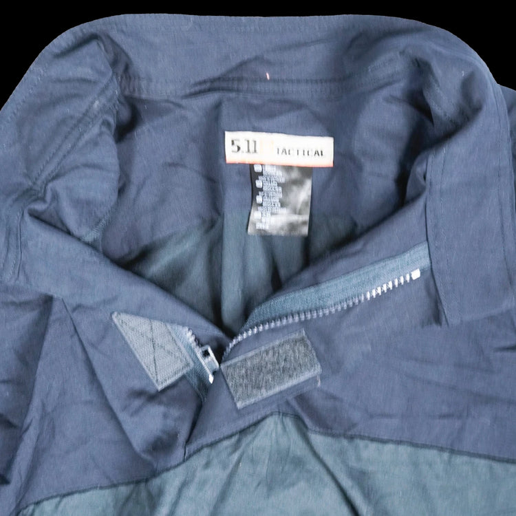 Commercial 5.11 Tactical Stryke TDU Rapid Combat Shirt. This example is in navy colour and sized Large. It features a mixed-material construction typical of rapid combat shirts, combining a lightweight torso with more durable sleeves.
