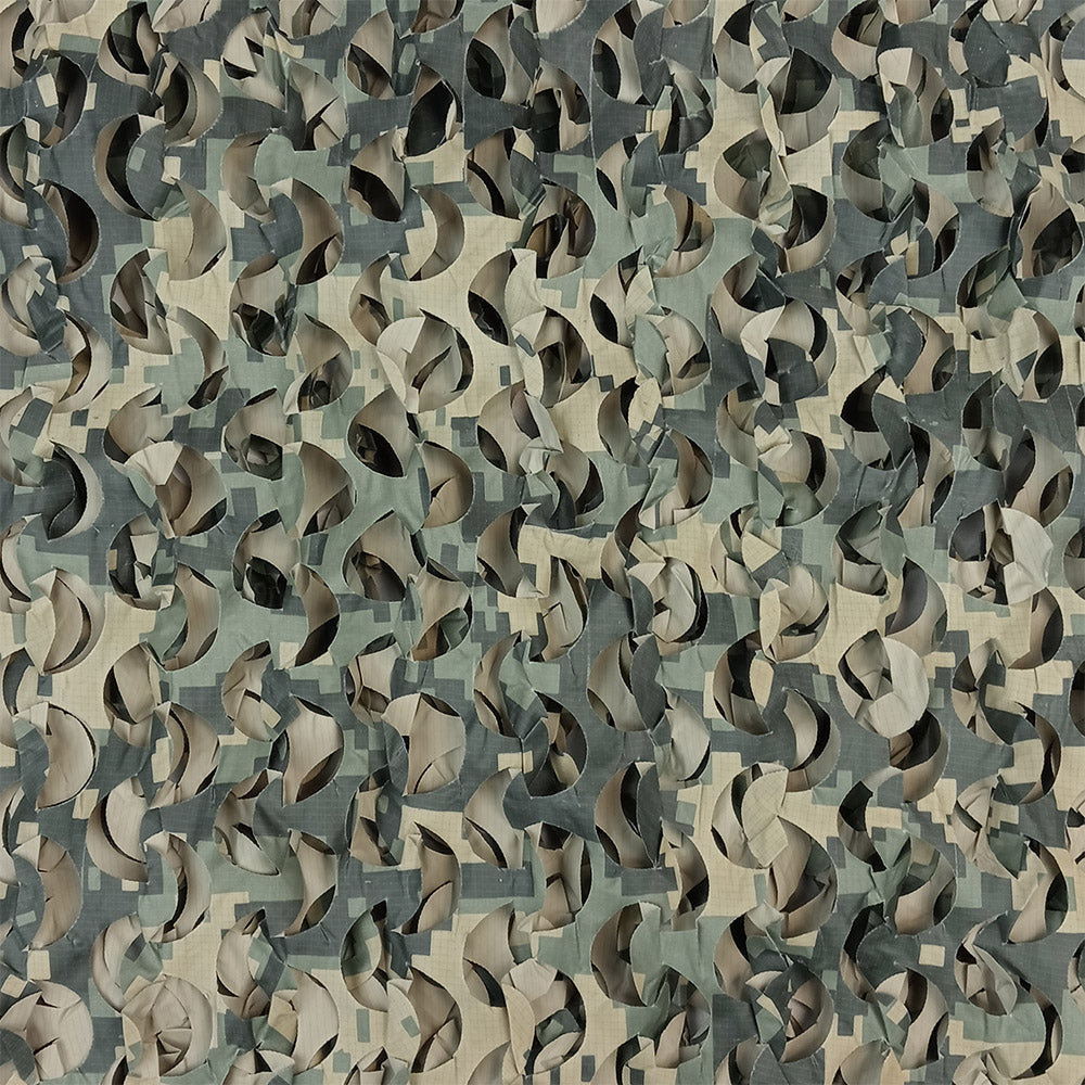 ACU camo net from Camosystems, per metre. Ultra-Light heavy-Duty Rip-Stop camouflage netting. This lightweight, strong, durable netting is additionally treated to provide a non-glare cover in the field while remaining quiet and rustle-free. This camo netting is for outside use only and is not fire rated.