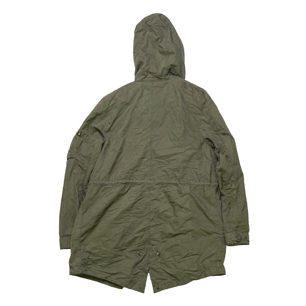 Alpha Industries lightweight fishtail parka in olive drab. This is a medium size garment with a 98cm chest and a lightweight 0.9kg construction.