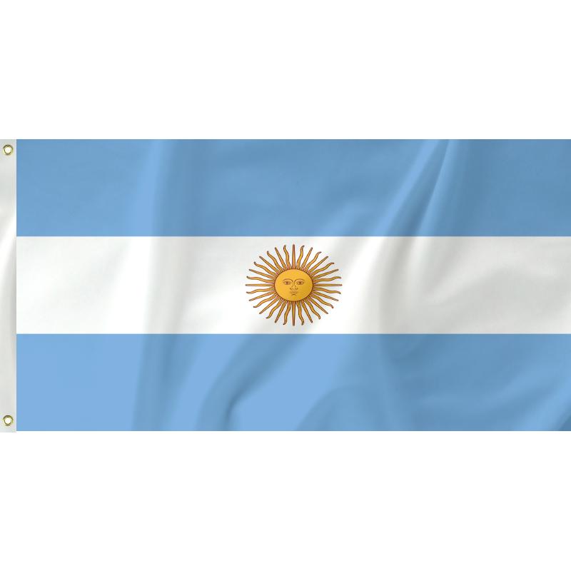 Adopted in 1812, the national flag of Argentina has two light blue stripes with a white stripes and the yellow "Sun of May" in the center.