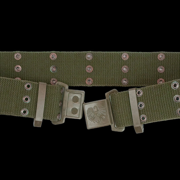 These belts were mainly produced during the 80's for the Austrian Bundesheer. The Austrians for a long time have copied elements of the US ALICE system and adapted it into their own. These belts work in all the same ways being able to mount ALICE pouches except for their buckles. It takes a bit of practice to open one - leverage pressure in the middle and twist up. The one positive these have over older metal hook versions is they will never come undone by accident!
