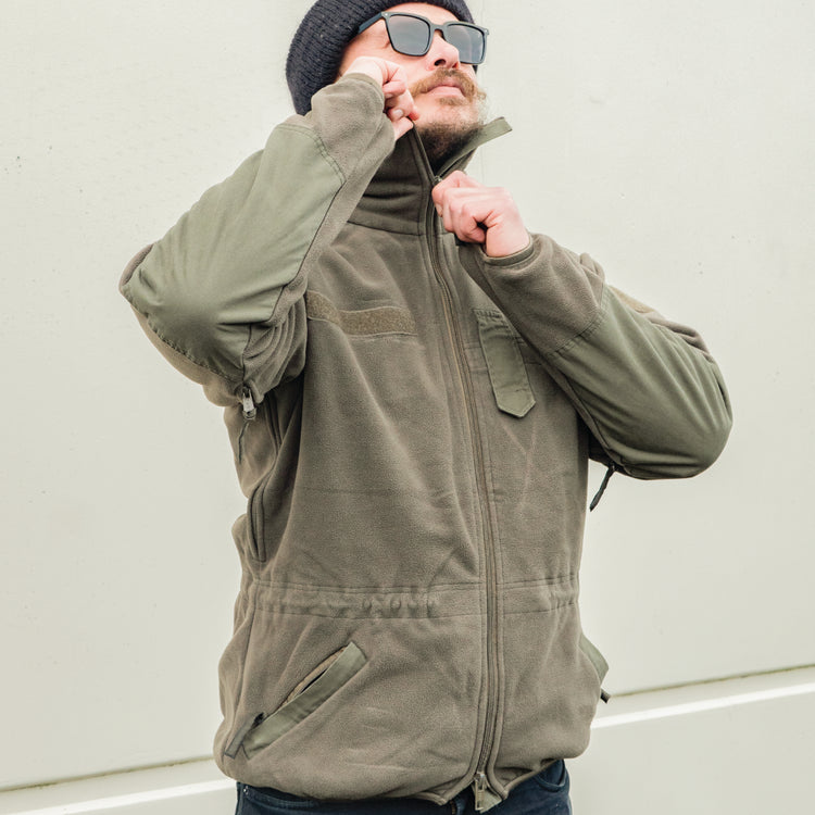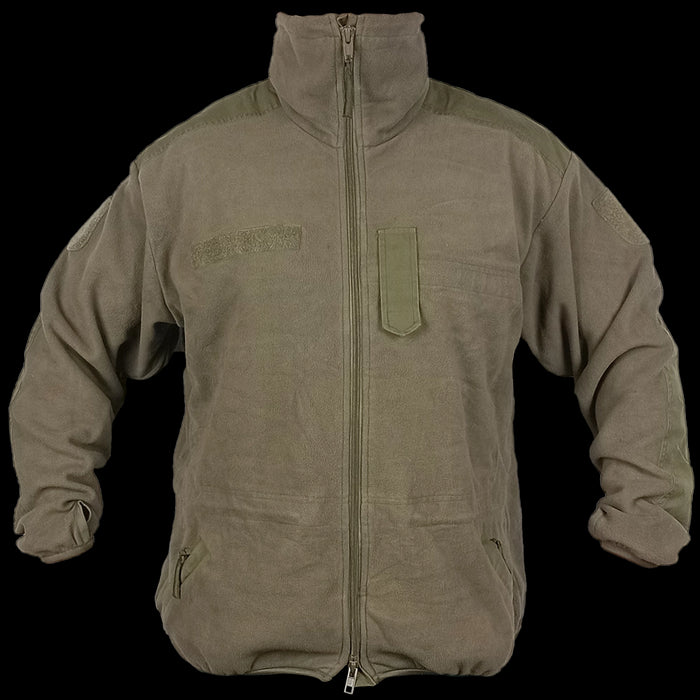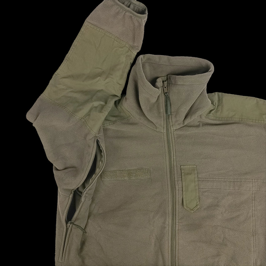 *Note* Some fleeces have dual zippered openings, some are single, and few zippers appear replaced. Some may have small repairs or marks to the fabric. Colours range from RAL7013, grey-green to olive.