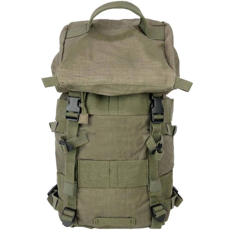 The pack has one large main compartment with 2 slim pouches in the back. Useful for your daily carry around town you can keep your spare clothing, stationary and books all separate and organised. This main compartment has a draw cord closure (which can help compress its contents down) as well as an extra sack sewn in around the opening. This sack can be sunken down into the main compartment and used as a divider or expanded upwards above the opening to increase the packs capacity. Speaking of adapting for the mission - the lid of the pack is fully removable. The main pack can be used stand alone with its draw cord closure at the top for when your require quick access. Externally the pack is lined with cotton canvas strips compatible with ALICE clips if you want to add more pouches.
