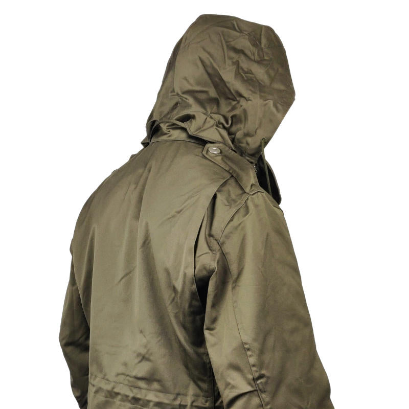 The construction is of a durable, heavy weight poly/cotton fabric suitable for rough outdoor use. While the jacket doesn't have internal buttons to support a liner, it's spacious enough for multiple layers to be worn underneath in cold and wintry weather. Much like the original M-65, this jacket features four front pockets, a zipped front with storm flap and a concealed hood in the collar. With it's subdued olive drab colour, timeless M65 design and rugged material, this genuine Austrian combat jacket is a great pickup for hunters and trampers. Or even as a smart-looking coat for urban outerwear, though you won't be taking full advantage of its battle-ready, heavy duty construction.