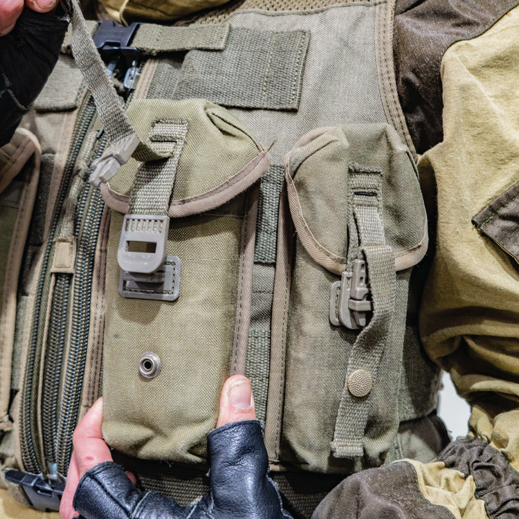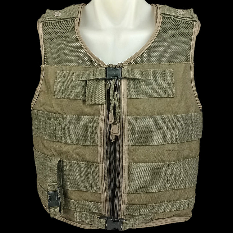 The Austrian tactical vest, part of the KAZ03 uniform, is a rugged load-bearing system designed for field efficiency and durability. With webbing all over, these vests are able to be decked out just how you like them. The attachment webbing (6cm) is much wider than standard PALS but they are ALICE clip compatible, will accept MOLLE if the spacing agrees and of course the Austrian pouches and Glock plastic clips. Adjustable lace up side panels and hook & loop shoulders for a comfortable fit. Like many assault vests, these have two mesh backed, vertical zippered pockets next to the front fastening. In varying shades of olive drab, these just go with everything. Grab one and some Austrian pouches while we have them.