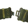 Based on the versatile US made M36 web belt and improved on by Belgian design. A very innovative and adaptable design, using rows of 3 eyelets all the way around the belt. The top row is made for attaching the users suspenders too. The middle is used for adjusting the best to the desired size, via a small hook attached to the belt. Finally the last set of eyelets, made for attaching equipment and gear too.