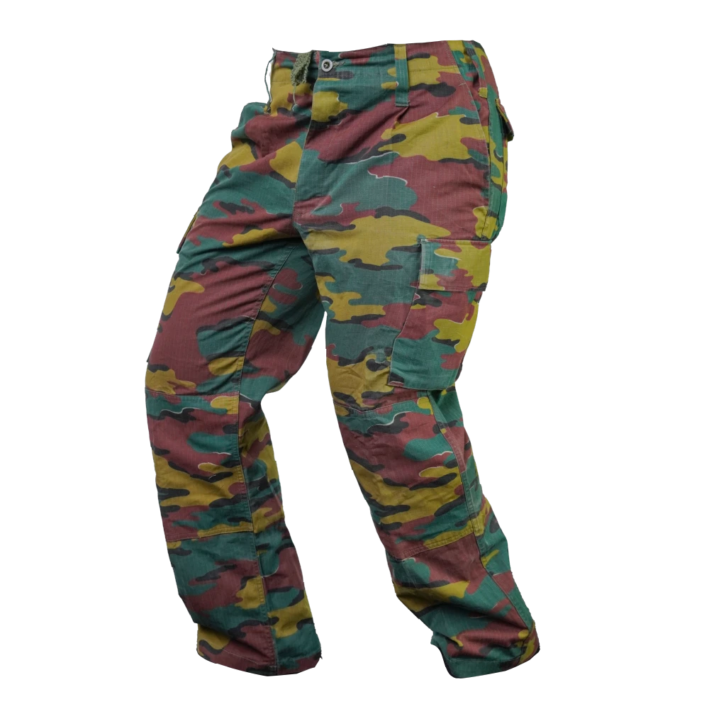 Belgian Jigsaw camouflage trousers in ripstop fabric. Made from a 65% cotton and 35% polyester blend.