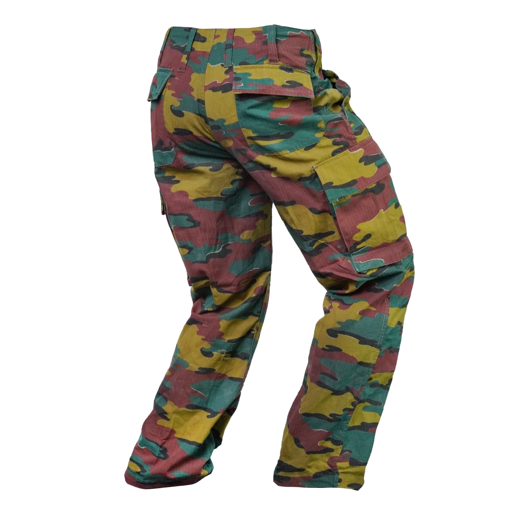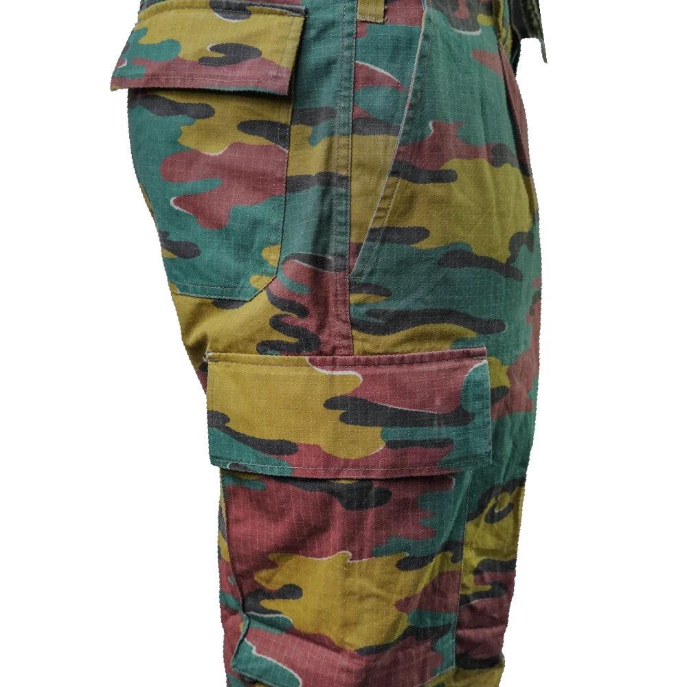 Belgian military surplus trousers in Jigsaw camouflage pattern. Constructed from 65% cotton / 35% polyester ripstop fabric with a standard field cut.
