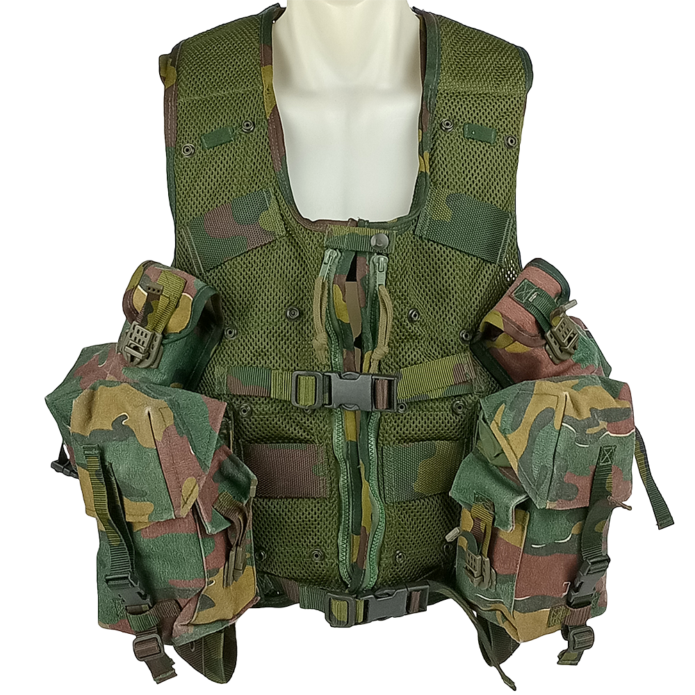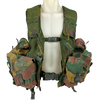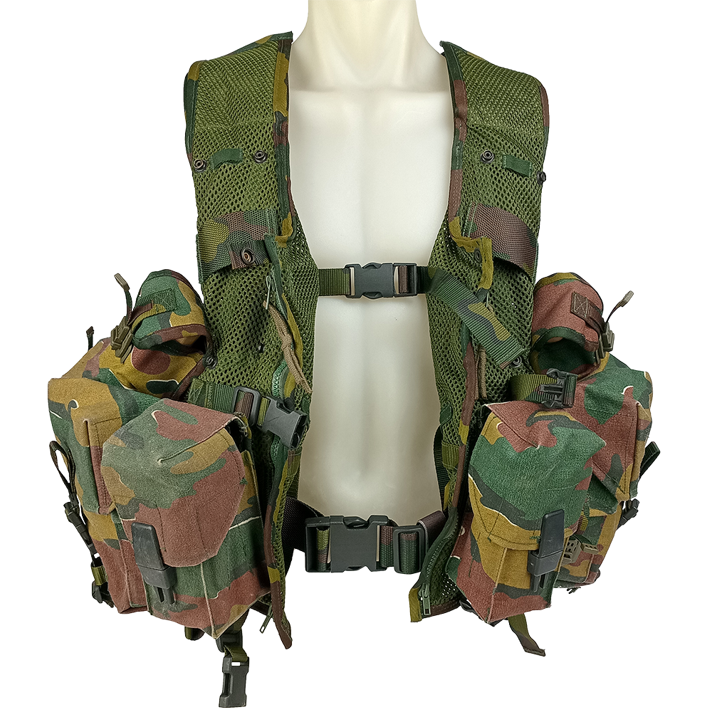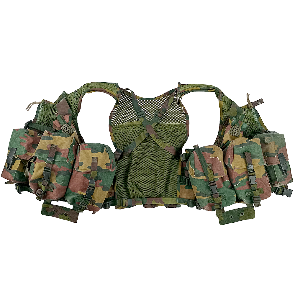These are loaded with storage. We have a good handful of vests without ammo pouches but all vests have 4, yes four, utility pouches. These happily carry canteens or whatever you may want to lug about! For vests with mag pouches, these can hold 3 mags each and have that oldschool tension peg closure, akin to those on ALICE magazine pouches. All vests have grenade pouches too, with speedy Spanish fly type closures. Two vertical chest pockets have pistol holsters in each side, in case you need ''one for each of ya'', like some kind of mad Belgian Doc Holiday (...or to suit your dominant hand). Vests may accommodate additional pouches via the webbing loops to each side of the upper chest, or to the rear-most utility pouch sides. Geared up to the gills!
