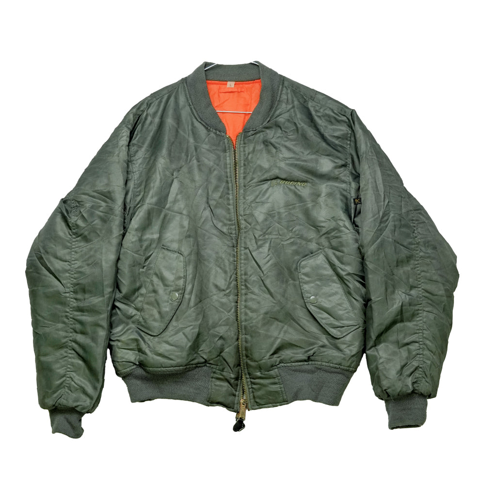 Olive MA-1 style bomber jacket manufactured by Rothco with Boeing branding. Classic flight jacket design with a zip front and ribbed trim.