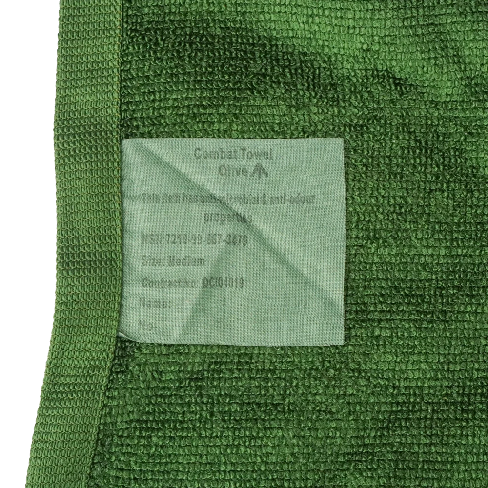 British Army anti-microbial towel in olive drab. Made from 100% polyester with a dense looped pile fabric and reinforced stitched edging.