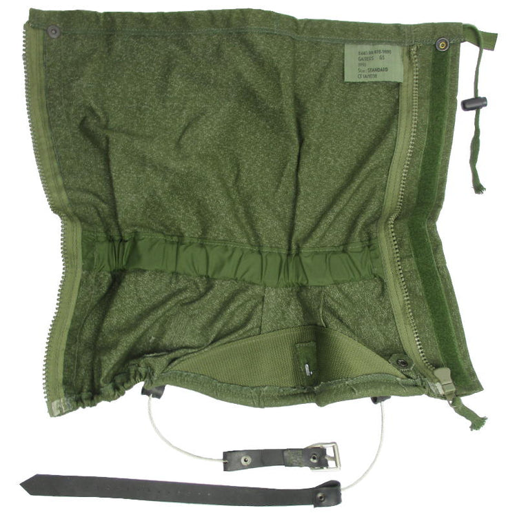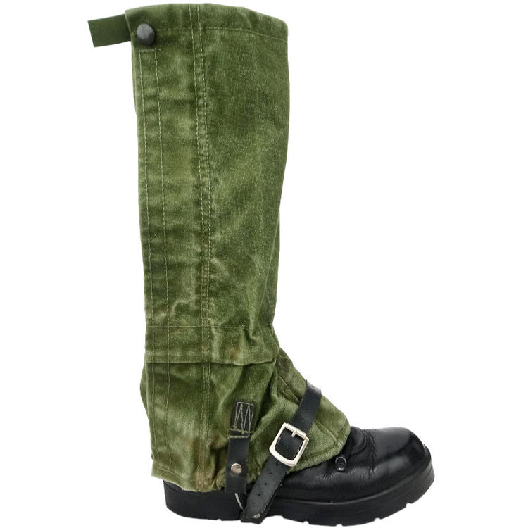 These genuine British Army canvas gaiters are as rugged as they come. Highly water resistant these will keep your feet dry and moving comfortably in the field. The gaiters come equipped with a full length zip for easy fitting and a hook & loop storm flap to help keep out driving rain. The top also sports an adjustable draw cord to create a seal around your leg. Rubber adjustable straps with a metal buckle will secure the gaiters firmly to your feet. A rugged metal wire joins these under the sole and provides longevity for a hard wearing area.