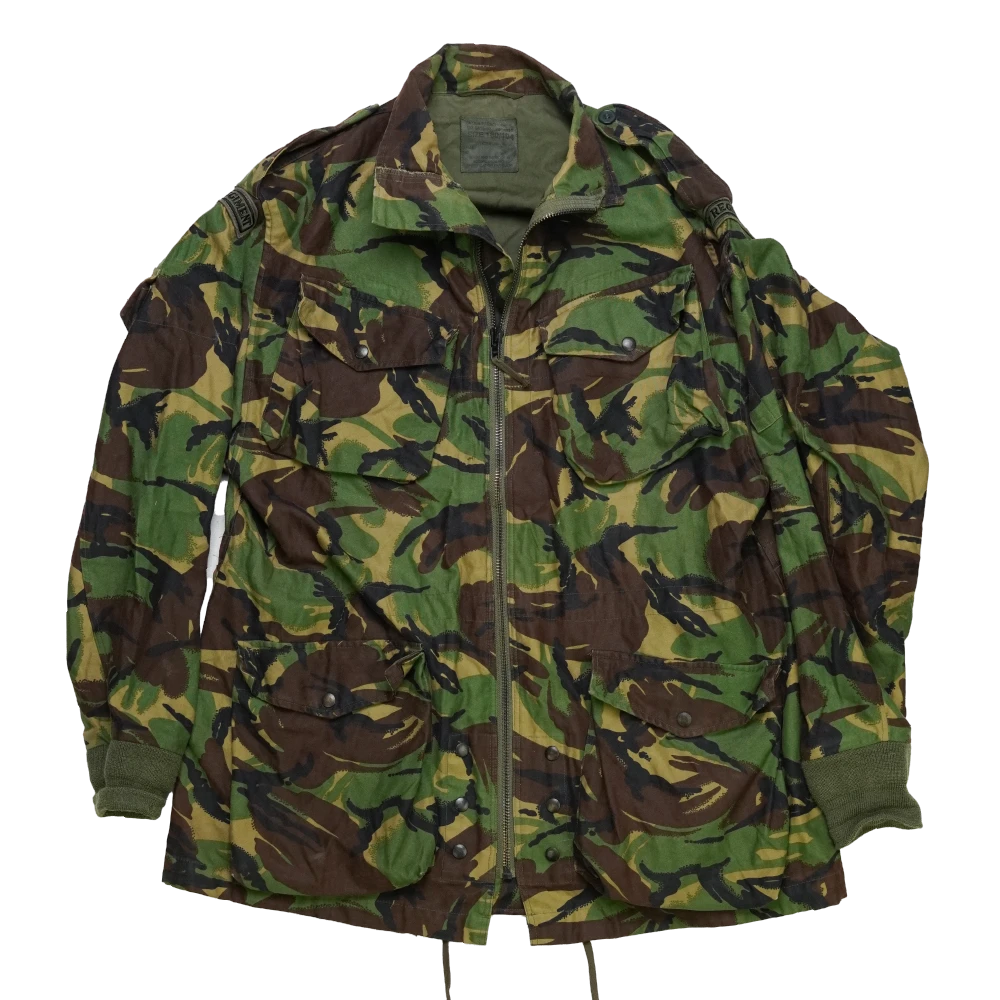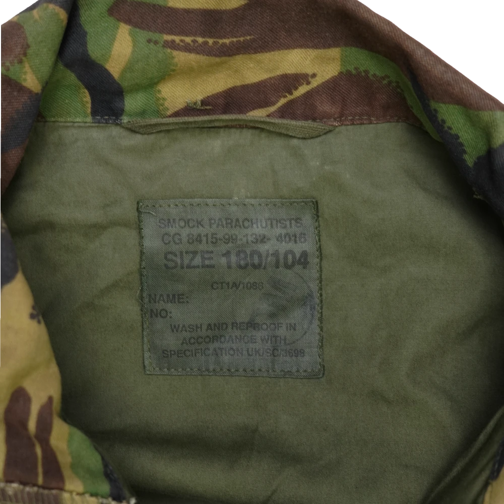 British DPM Parachutists smock in Used/Good condition. Traditional smock design with multiple front pockets and heavy-duty front closure. Features RAF Regiment shoulder flashes.