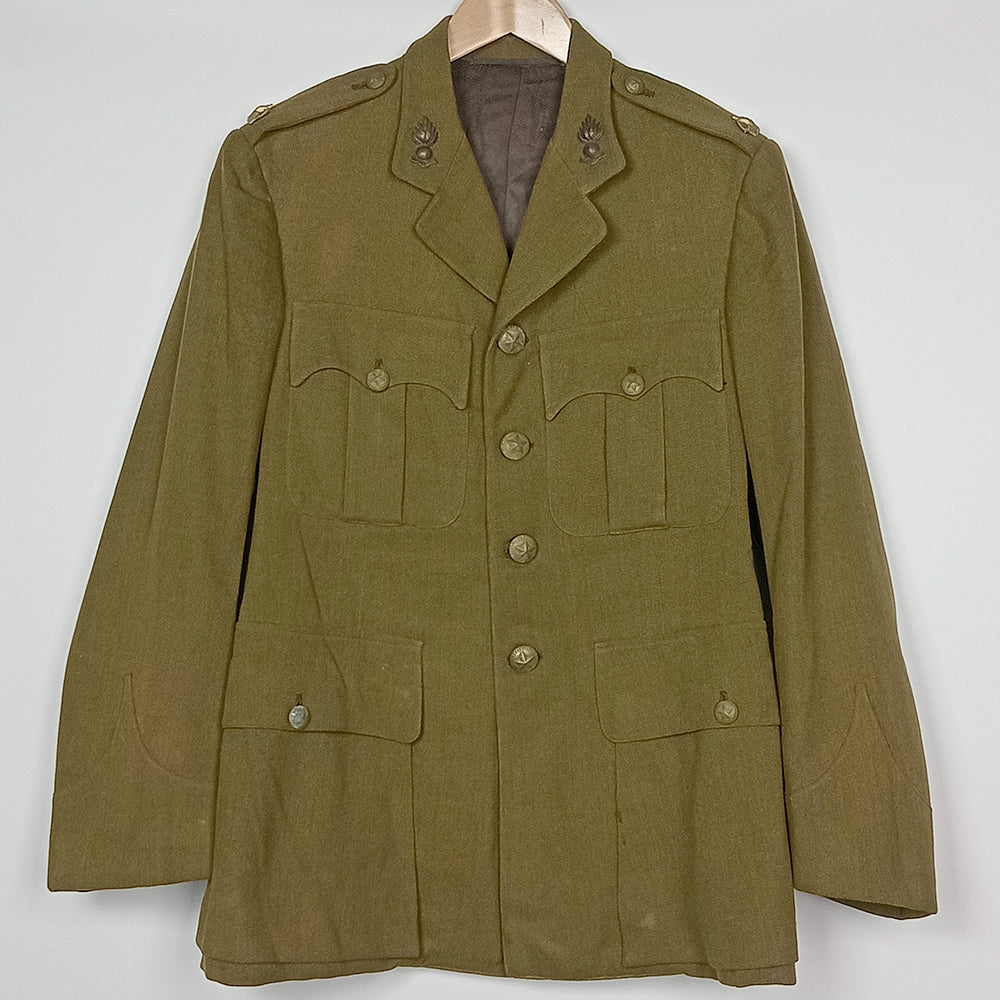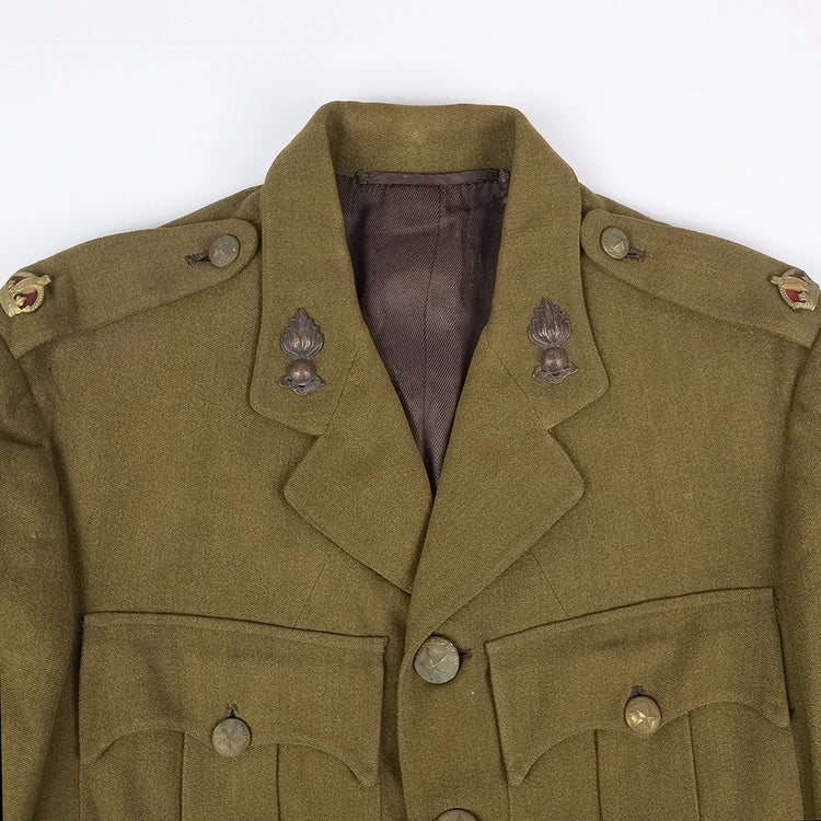 Featuring scalloped breast pockets and cuff detail, 4 button up front with Indian Engineers buttons, India artillery lapel pins and King's crowns to the epaulettes. A beautifully tailored jacket with great patina to the hardware.