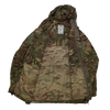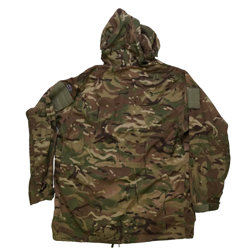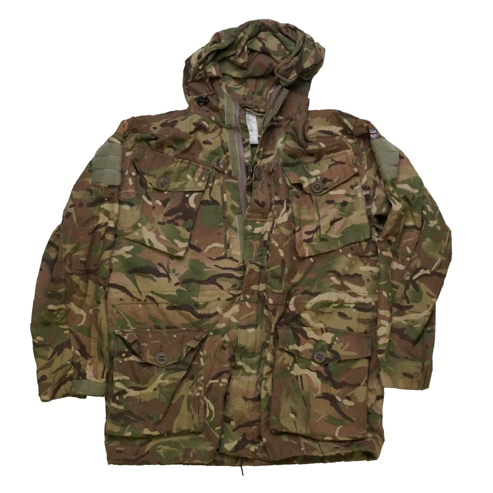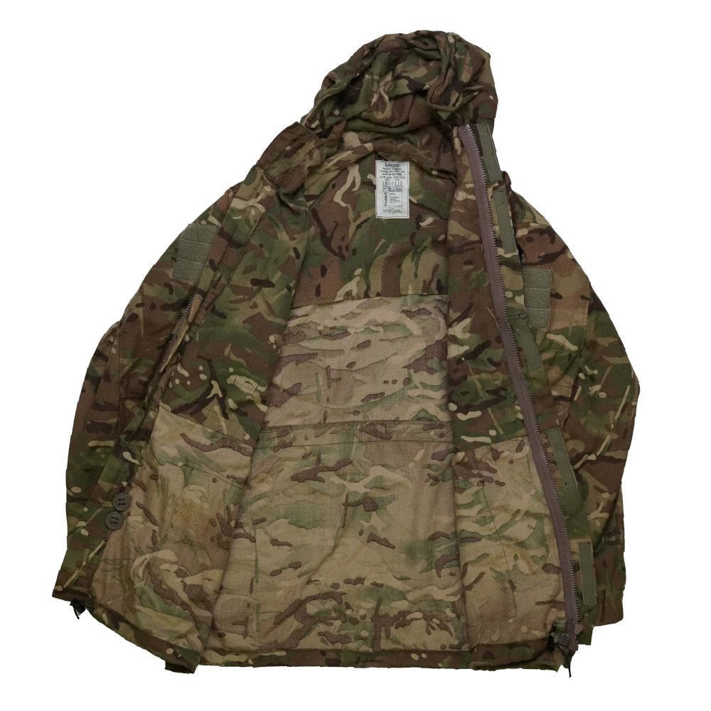 British military windproof jacket in MTP camouflage pattern. Flame resistant (FR) construction with a windproof outer layer. Designed with multiple storage pockets and adjustable features.