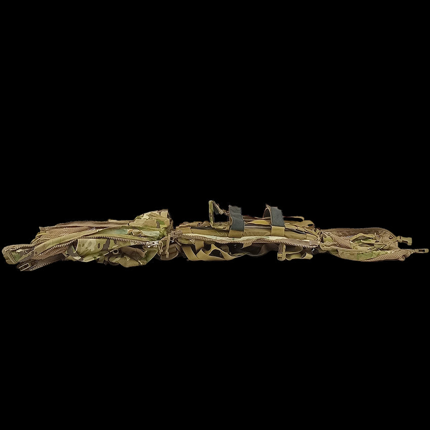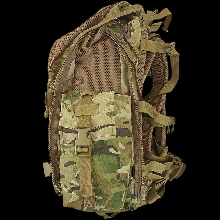 - Side zips for attaching pouches