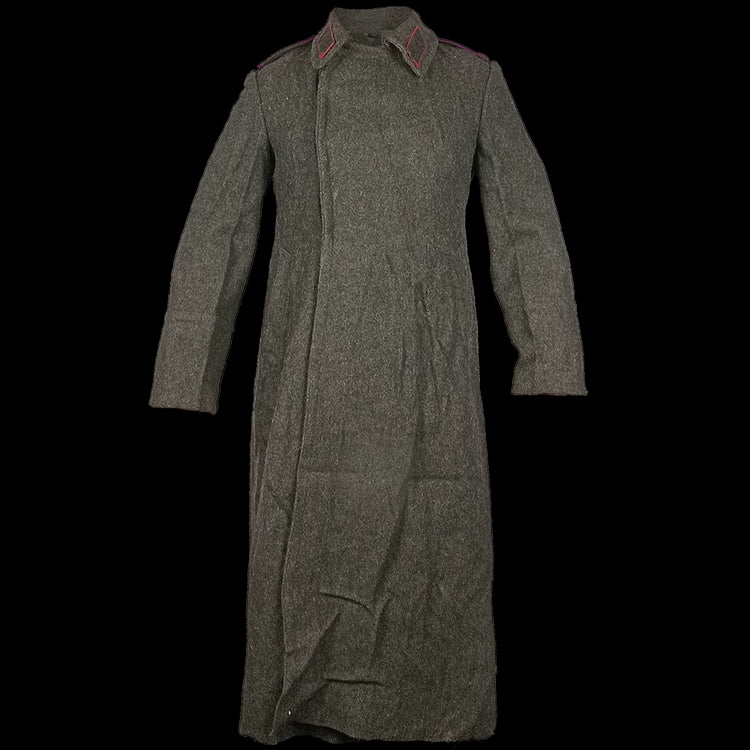 Inspired by the nice coats Bulgaria's mates over in the the Soviet Union had, these have an offset hook & eyelet closure, long length, big collar and pleated back with buttoned fastener. Like our usual batch of charcoal coloured Bulgarian overcoats, these were issued during the Cold War era, extending down past the knees in a warming wool blend.