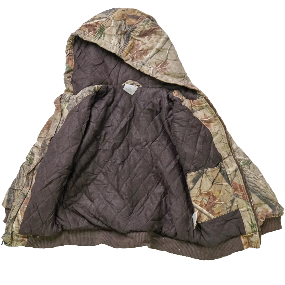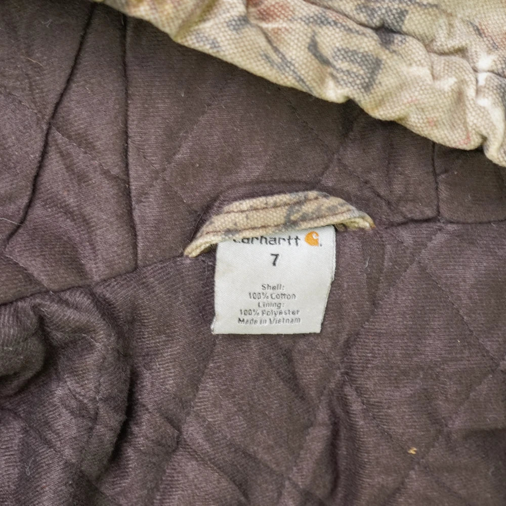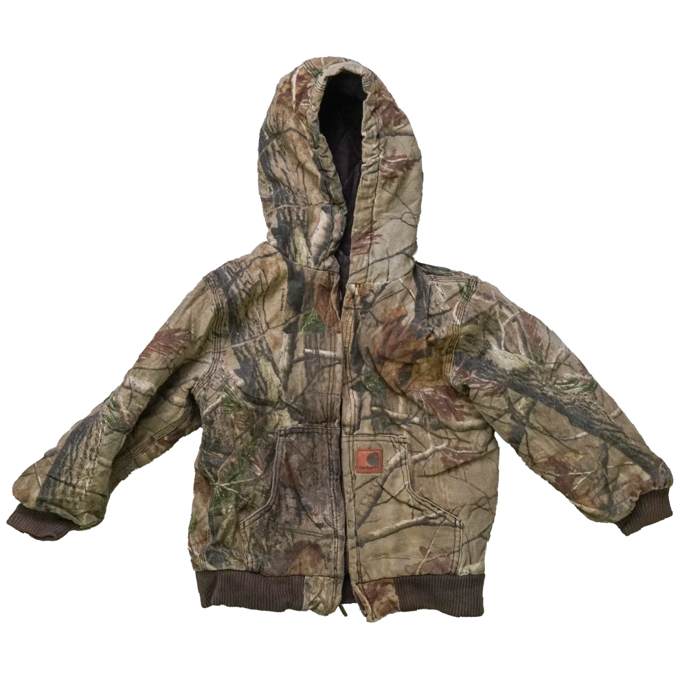Carhartt kids jacket in Realtree camouflage pattern with an attached hood. Youth Size 7.