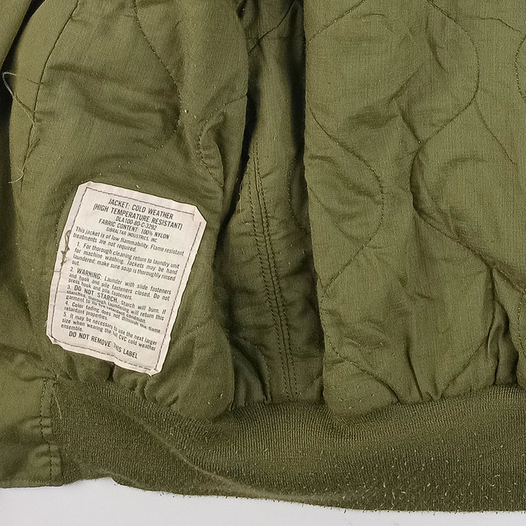 The Combat Vehicle Crew (CVC) Cold Weather Jacket from 1980 is a rugged military-issued garment designed to keep U.S. heavy vehicle crews warm in harsh conditions. Made from durable, fire-resistant materials with quilted insulation, it offers protection and comfort inside tanks and vehicles. Introduced during the Cold War, the CVC jacket was part of the U.S. Army’s specialised gear for specific personnel, combining practicality, safety, and durability for extended field use. This example is in very tidy condition with a few loose threads that could be left for character, or trimmed back.