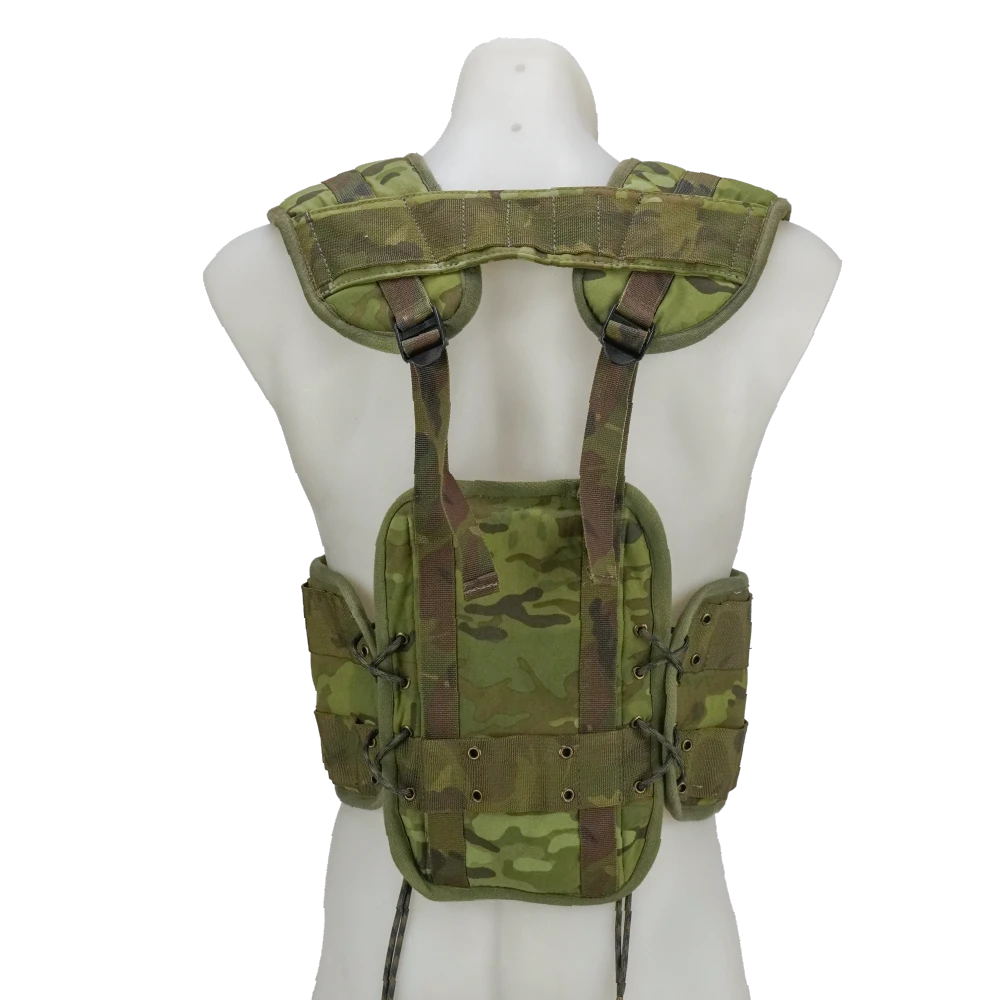 Custom Dutch-style web set based on the M93 vest design, produced in-house using Multicam fabric. Features a modular vest-style layout with integrated attachment points and webbing configuration.