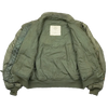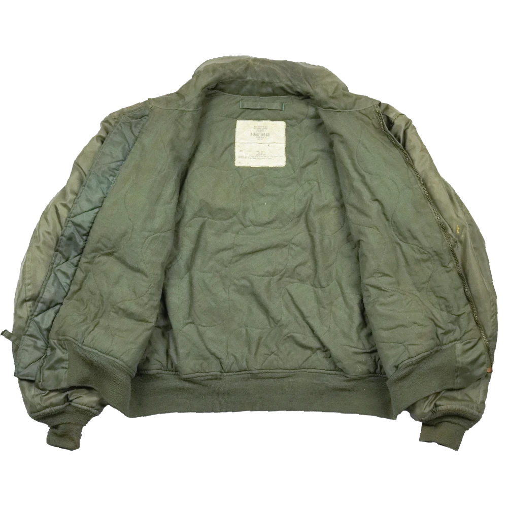 The CWU-45/P men's cold weather flyer's jacket is a U.S. Air Force flight jacket designed for cold conditions. It features a front zipper with storm flap, knit cuffs and waistband, and two large front pockets.