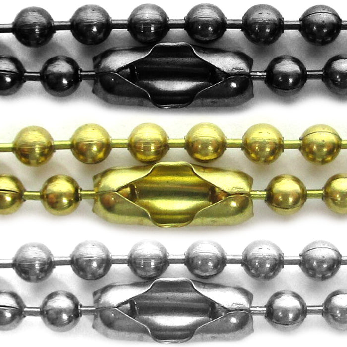 Dog tags attach to these long and short chains and are placed around a soldier's neck. Dog tags are a form of identification for military units. Soldiers wear two identical tags around the neck, one on a long chain and one on a shorter chain. These chains come in three different colours that correspond with our single dog tags.