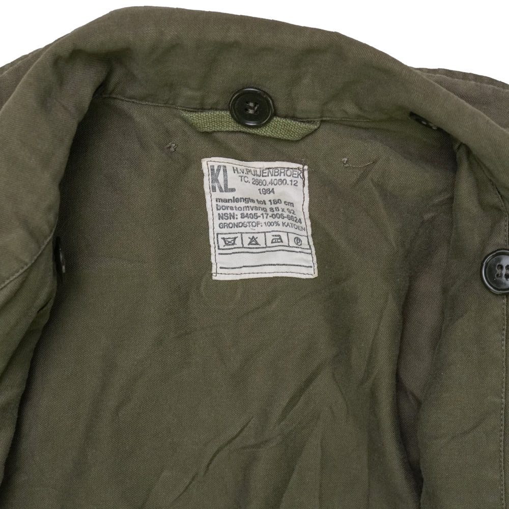 Dutch Army olive drab field jacket in small size. Military surplus garment with a classic field jacket cut and mid-weight construction.