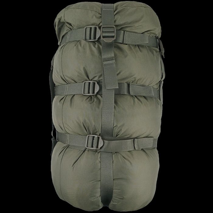 Both sleeping bags feature durable ripstop nylon shells and synthetic insulation designed to retain heat even when damp. The bags can be used separately or layered together for extreme cold, forming a modular system adaptable to various climates. A heavy-duty compression sack enables tight packing, saving space in your ruck or truck. Designed for reliability, this system meets military standards for durability, comfort, and operational efficiency, whether you're bivouacking in mild conditions or braving a cold-weather op.