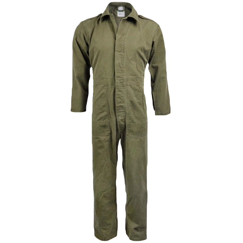 A genuine pair of mechanic's overalls from the Netherlands. Their army issue protective garments are plain and simple, a "just get the job done" kind of approach.