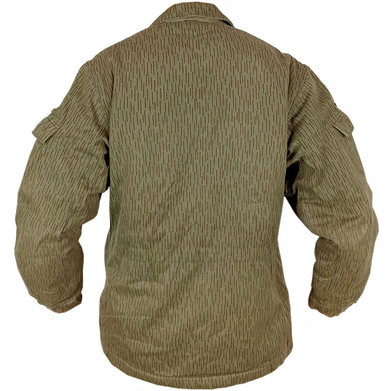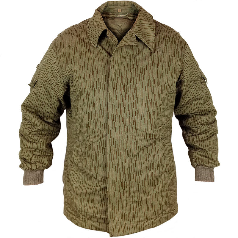 Snug in strichtarn, these jackets are what East German soldiers were issued for winter. With a smooth polyester lining and padded polyamide layer inside, these will keep you warm. The cuffs are elasticated so they can trap any body heat generated. An extra add on feature is the collar - these have internal buttons so you can attach a big fur collar much like their Soviet overlords style (fur collar not included). The outside is made from a rugged cotton exterior and complete in the iconic strichtarn/strichmuster camouflage.