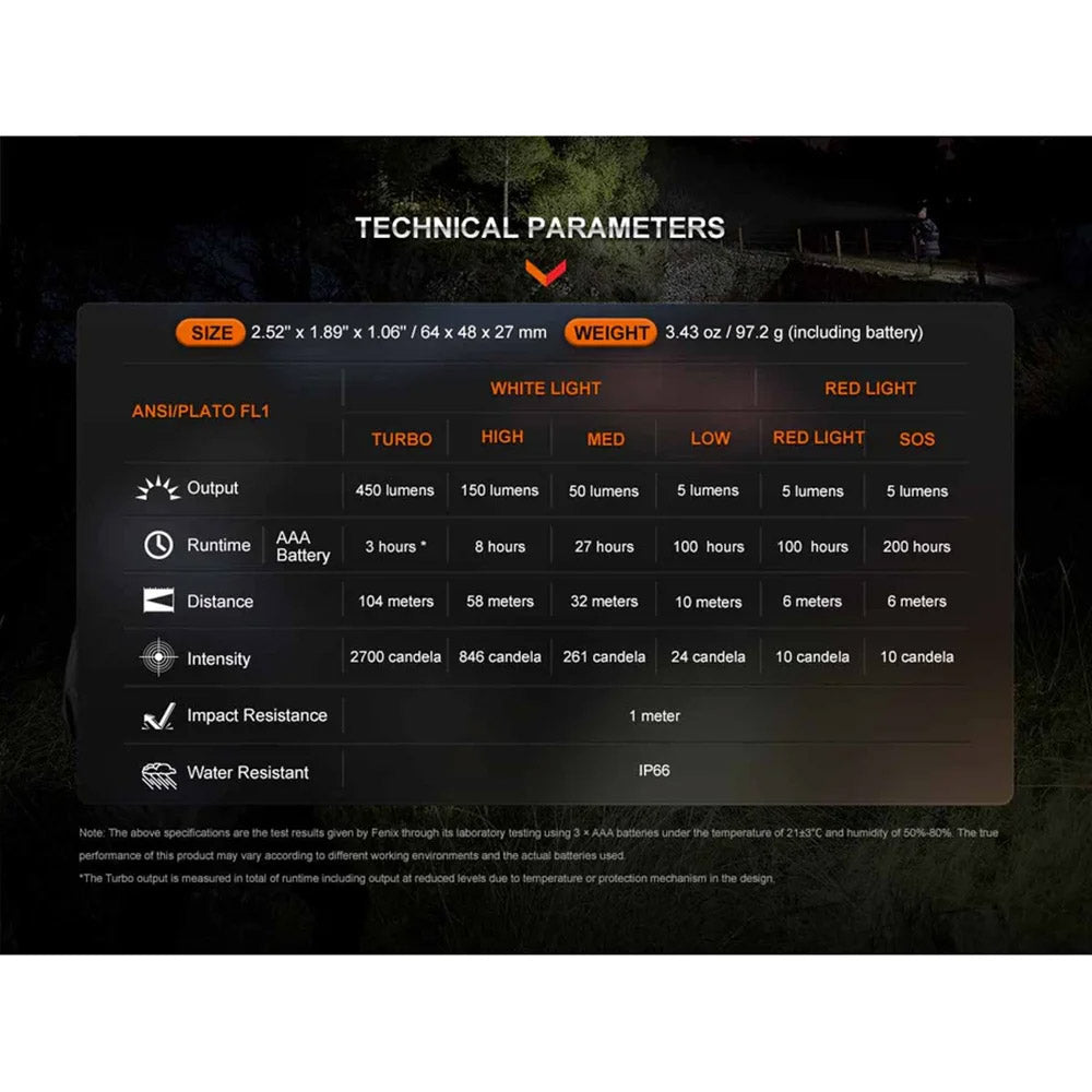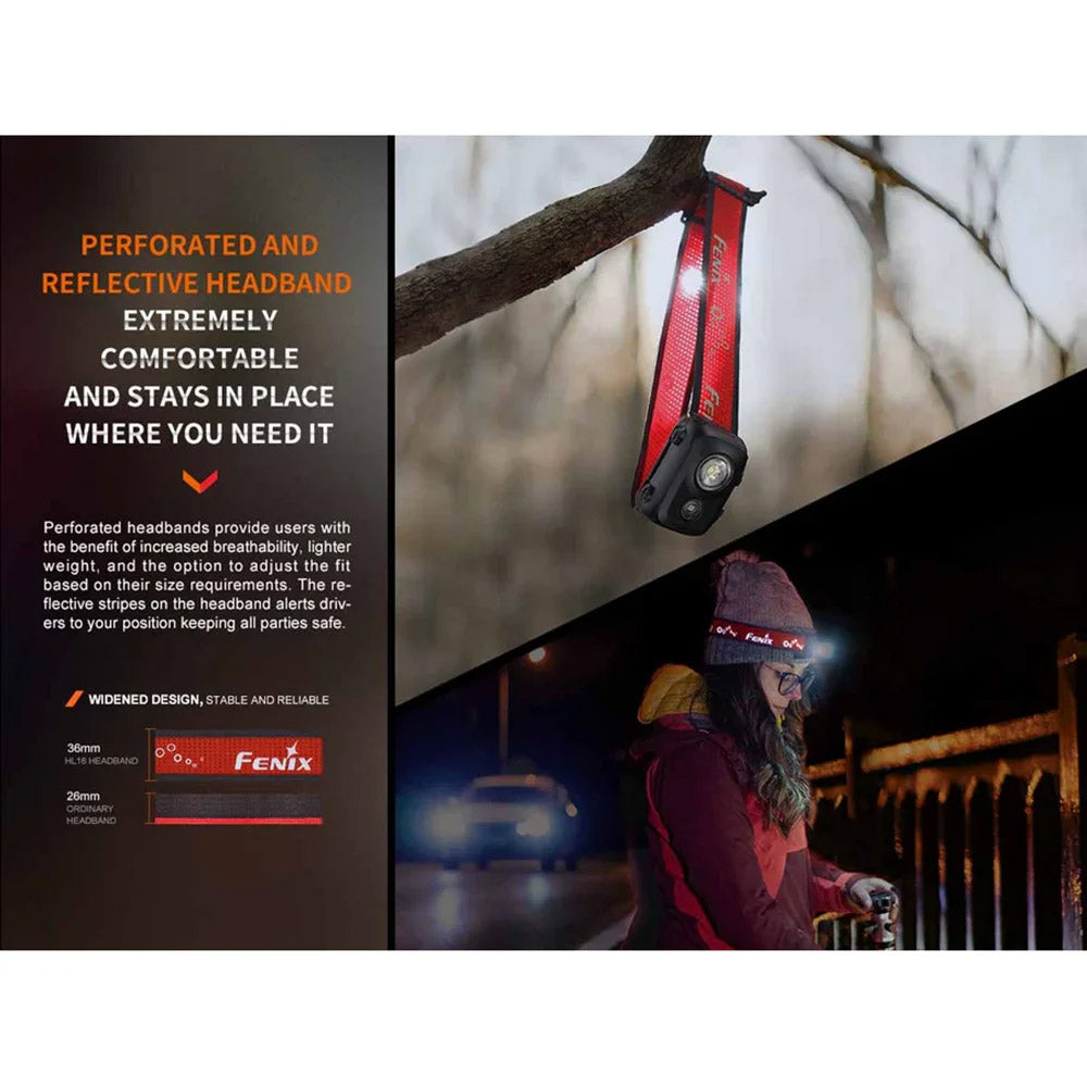 The new compact Fenix HL16 AAA Headlamp is battery-powered and can serve as your lighting companion in a multitude of tasks. This LED headlamp reaches a maximum of 450 lumens and can throw a beam as far as 104 meters (341 feet). The convenient dual switch quickly controls four brightness levels of white light mode, as well as red light and red SOS Flash. Made from high-strength PC material, this lightweight headlamp is rugged and reliable. And the widened perforated headband makes this headlamp extremely comfortable and stable to wear. Coupled with IP66 water and dustproof protection, the HL16 can meet various outdoor and indoor lighting needs.
