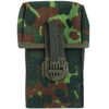 A German issue magazine pouch in German Flecktarn camouflage. Made for, but not limited to, two G3 assault rifle magazines. The pouch also takes in several other similar caliber magazines, such as the FAL or M14's. These are made for and only fit the Bundeswehr webbing system though with an ALICE clip (not included), can be made to fit other webbing systems. The pouch itself is constructed from a very durable cordura, with plastic stiffeners/dividers for the magazines, which makes reloading easier and prevents the contents from rattling against each other. The large flap protects the mags from dirt, and has a "Spanish fly" type buckle, making it very fast to operate. Keep those G3 mags safe and deck out your German web set with more mag space.
