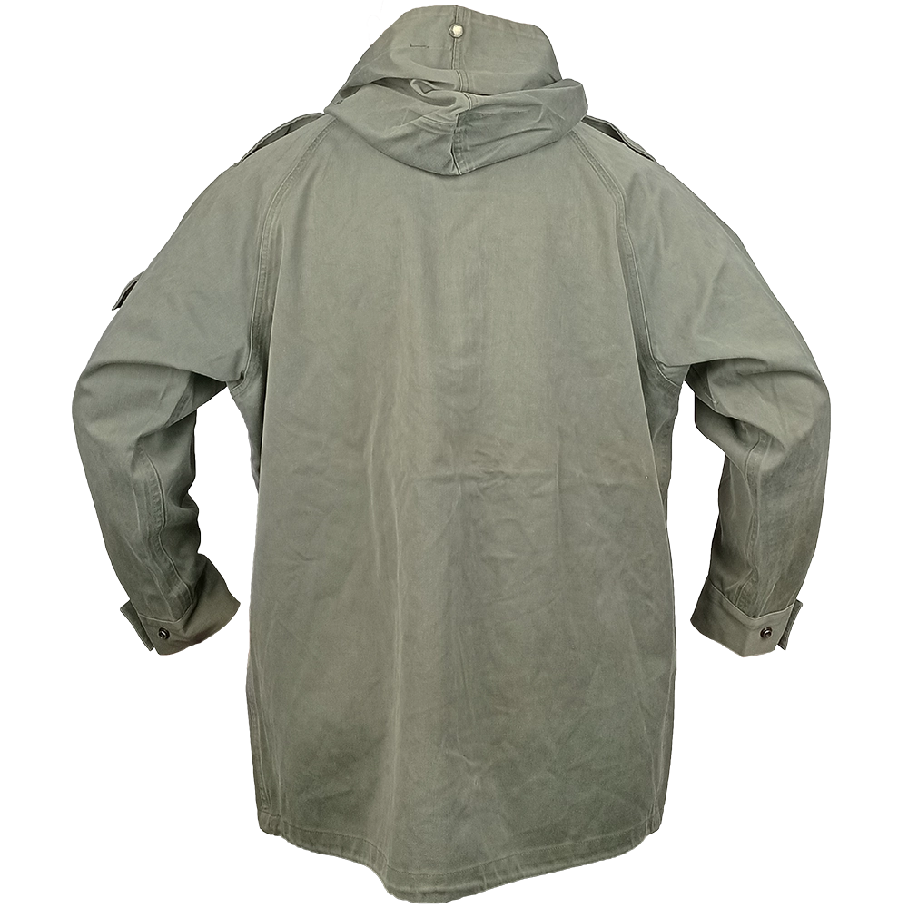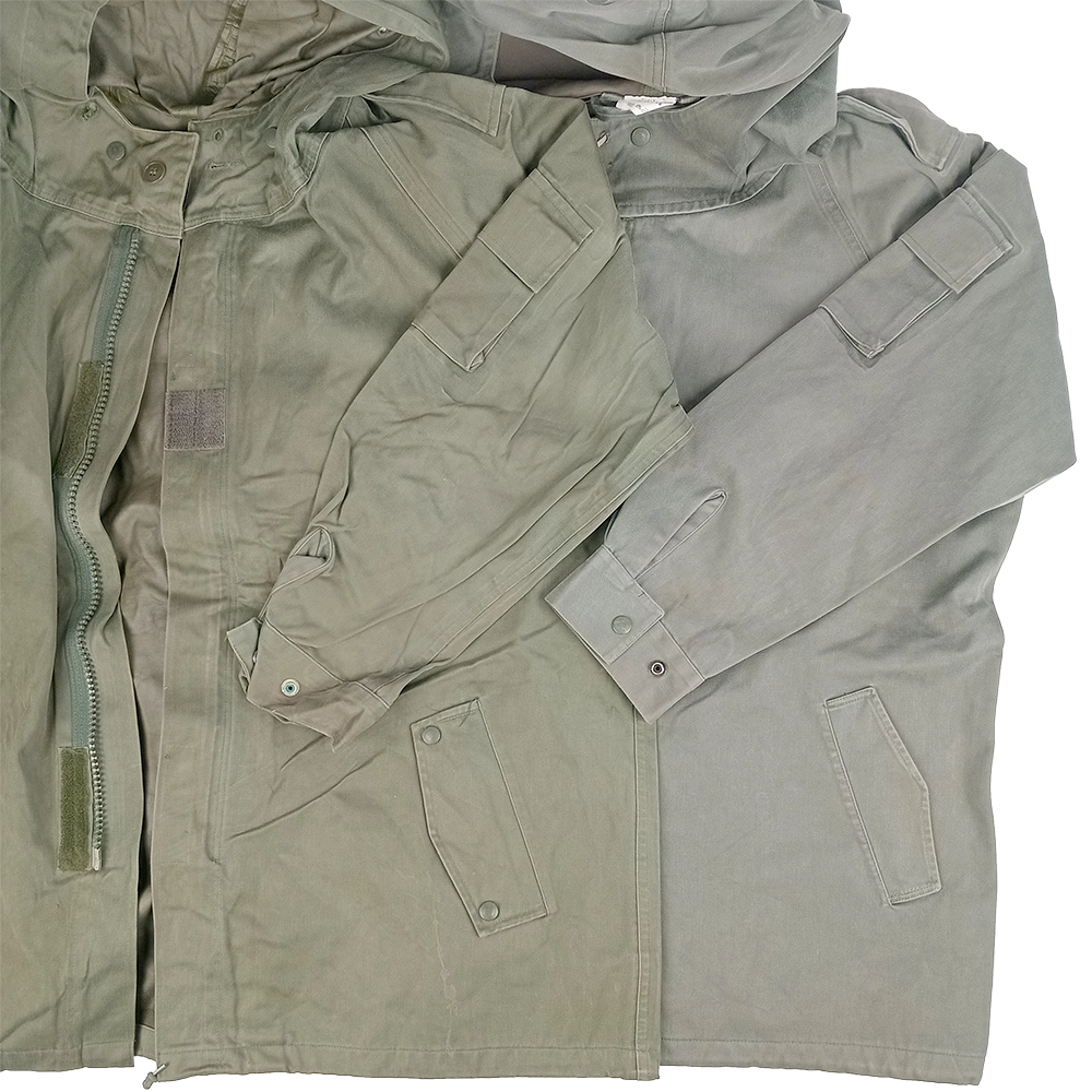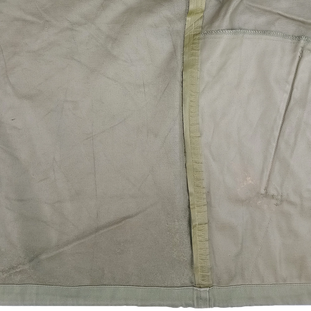 Made with a rubberised backing, it features a full-length zip with storm flap, adjustable cuffs, and multiple utility pockets. Its olive green to grey (some have faded) design reflects authentic French military style, offering both function and history. Some of these have more wear than others and pictured is some abrasion to the rubberised interior. Some have tape seams that are beginning to lift up, but they are still doing a pretty good job. Also pictured, some jackets have dome closure pockets to the front, while others are hook & loop only. Overall these have held up great but the waterproofing will not be as good as it used to be.