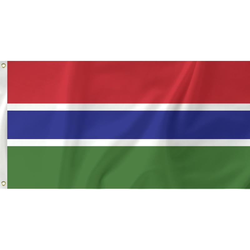 Gambia adopted their current flag in 1965 not long after gaining their independence from the British Empire. The red colour evokes the sun as well as the savanna. The blue represents the Gambia river which is the nations key feature and its namesake. The green strip represents the nations dependence on agricultural goods. And finally the white strips represent unity and peace.