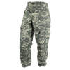 The ACU (Army Combat Uniform) trouser (or ACU pant) is worn with a two-inch nylon web belt. For combat purposes, each knee has hook & loop pouches for inserting padding to improve the resilience of the trouser. Storage includes two slash pockets, two forward-tilted cargo pockets, two lower leg pockets, and two rear buttoned pockets. The cargo and lower leg pockets feature hook & loop closures for quick access while on the move.