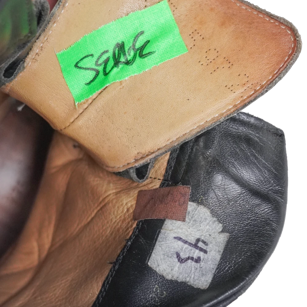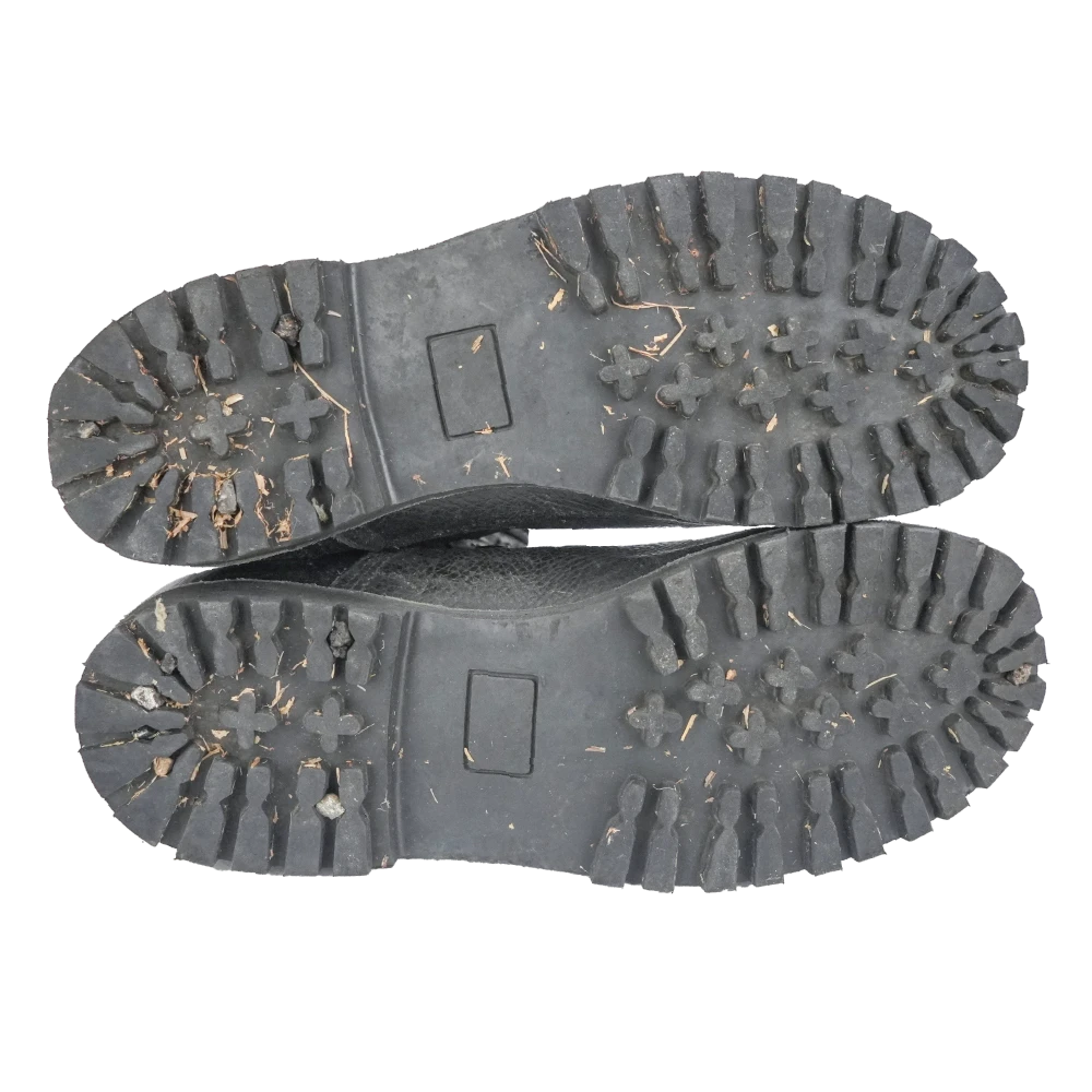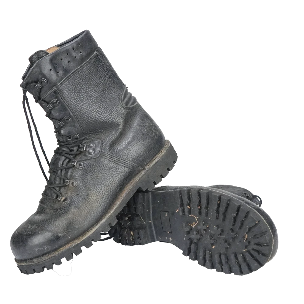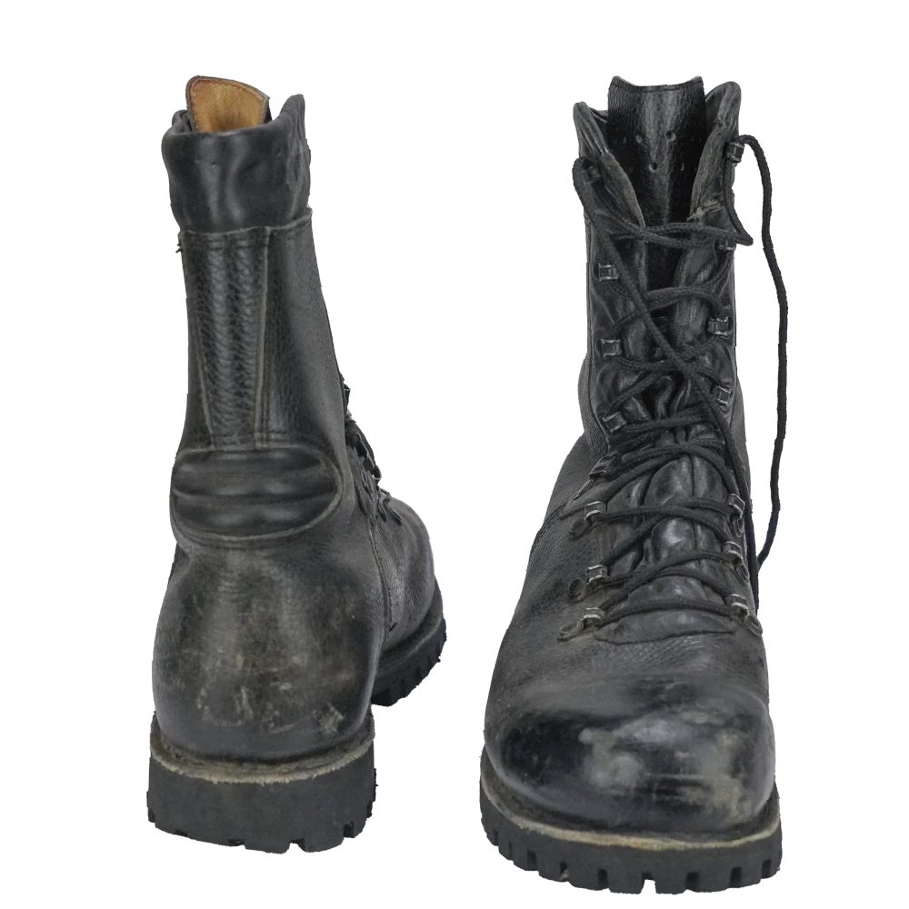 German Army Model 2000 leather combat boots in size 9.5 UK. Leather construction with a military combat boot pattern, and this pair has been resoled.